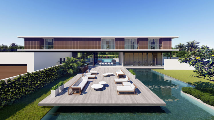 The modern design of the Wing House draws inspiration from contemporary architecture’s emphasis on clean lines, expansive spaces, and a deep connection to nature. Each wing is designed with a specific function in mind—living areas, private quarters, and entertainment spaces—ensuring a clear division while maintaining fluidity and connectivity. The extensive use of glass allows natural light to flood the interior and provides unobstructed views of the pool and gardens, blurring the boundary between indoor and outdoor living. The home’s architecture creates a sense of openness while maintaining privacy, embodying the balance between luxury, function, and nature.
